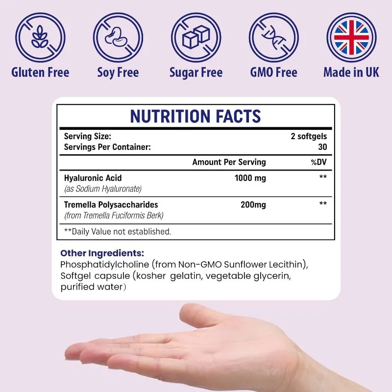 Double moisturizing effect: containing 200mg Tremella fuciformis polysaccharide, the liposome hyaluronic acid supplement has dual strength moisturizing and antioxidant effects. Make your skin softer and smoother